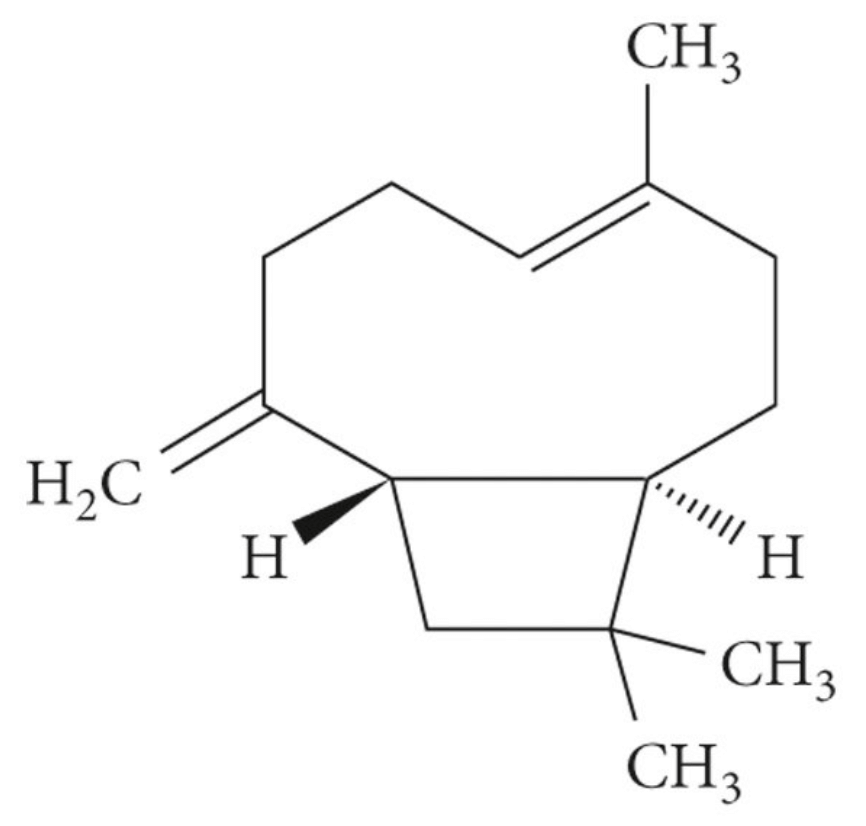 β-caryophyllene (sesquiterpene) — Humans and most animals have an endocannabinoid (EC) system - a series of receptors that are configured only to accept cannabinoids, especially tetrahydrocannabinol (THC) and cannabidiol (CBD). CB1 receptors are found in the brain, central nervous system, lungs, liver, and kidneys while CB2 receptors are found in the immune system and stem cells. Cannabinoids have powerful anti-inflammatory, anti-spasmodic, and immune-stimulating actions. The EC system involves various physiological processes including appetite, pain sensation, mood, and memory. β-Caryophyllene is an agonist of CB2 receptors, which is why it displays cannabimimetic effects of anti-inflammatory, antinociceptive, and neuroprotective.